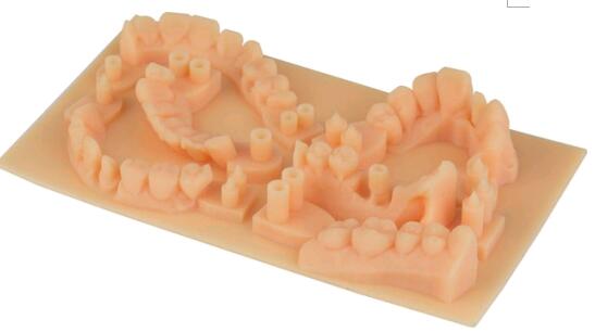 因此我們不能說(shuō)光敏樹脂是某種化學(xué)物質(zhì),它在不同的配比之后3D打印能夠得到類似ABS、尼龍等工程塑料材質(zhì)的樣品而物理性能更佳,甚至可以作為試制注塑模具。另外樹脂的性能決定了它的應(yīng)用方向,石蠟樹脂通常作為珠寶首飾的陰模,用于首飾鑄造;牙科樹脂則用于復(fù)原牙床結(jié)構(gòu),制作義齒。