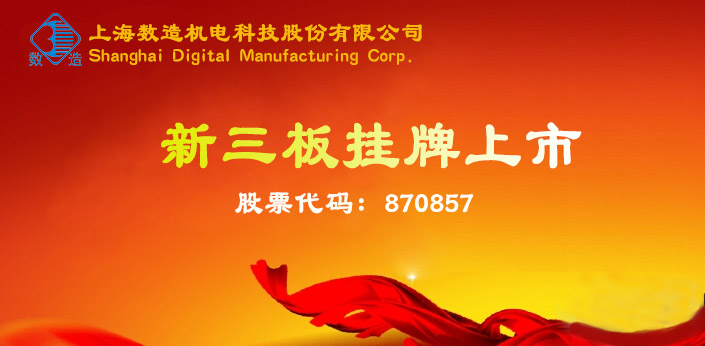 2017年1月23日,上海數(shù)造機(jī)電科技股份有限公司在全國(guó)中小企業(yè)股轉(zhuǎn)系統(tǒng)(新三板)獲準(zhǔn)掛牌,證券簡(jiǎn)稱:數(shù)造科技,證券代碼:870857。全國(guó)中小企業(yè)股份轉(zhuǎn)讓系統(tǒng)(新三板)是經(jīng)國(guó)務(wù)院批準(zhǔn),依據(jù)證券法設(shè)立的全國(guó)性證券交易場(chǎng)所,是繼上海證券交易所、深圳證券交易所之后第三家全國(guó)性證券交易場(chǎng)所。