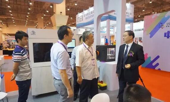 本屆3D打印節(jié)展會(huì)主辦方青島三迪時(shí)空董事長(zhǎng)李培學(xué)陪同青島市政協(xié)副主席、廣州增材協(xié)會(huì)會(huì)長(zhǎng)參觀了數(shù)造展位現(xiàn)場(chǎng)。