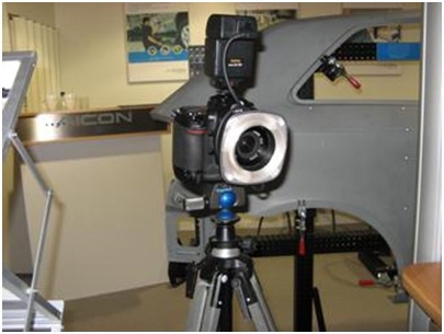攝影測量系統(tǒng)(3DPS)是一部便攜式三坐標測量機,它采用高解析度數碼相機采集圖像數據。測量前,圓形標志點粘貼在所有將被測量的點上,然后用高解析數碼相機從不同角度對被測量物體拍照,這些相片輸入到AICON 3D Studio測量軟件中,可以自動計算所有靶點的三維坐標。計算是基于空間圖像三角化原理(照相測量法),并且是全自動的。由于軟件中內含有同步校準步驟,所以不需要預先校準相機。